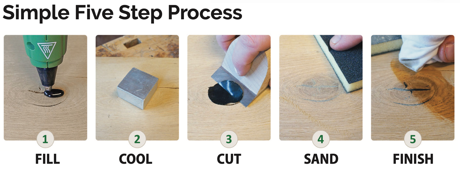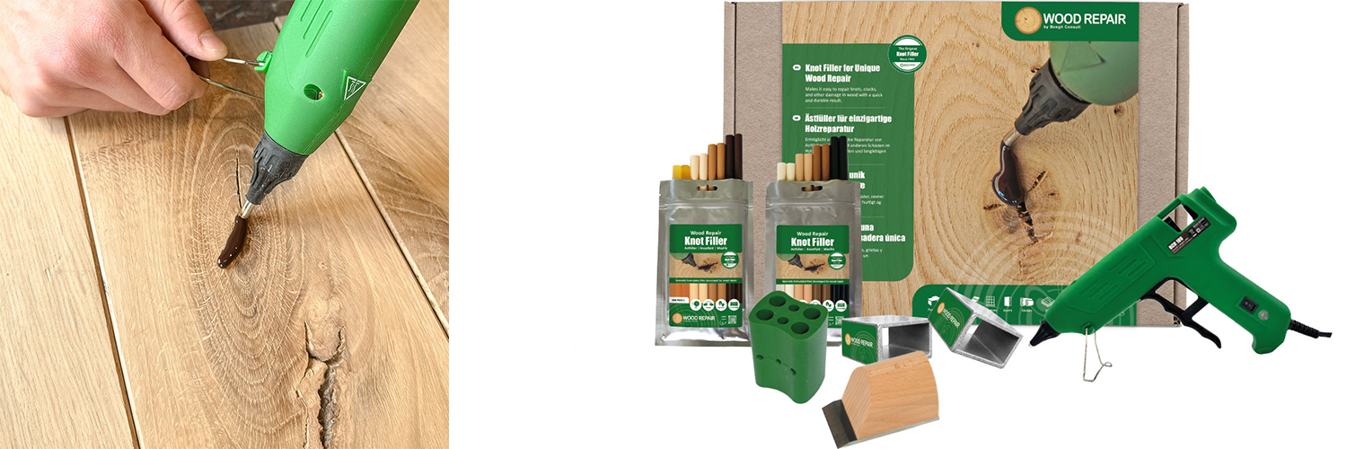 | 730200 | Wood Repair Plus+ Kit Includes: 1x BCD 180 Knot Filler Gun 1x bag Mix 1 1x bag Mix 2 2x Cooling Brick (50 × 50 mm) 1x Cutting Tool (50 mm) 1x Knot Filler Colour Changer |
